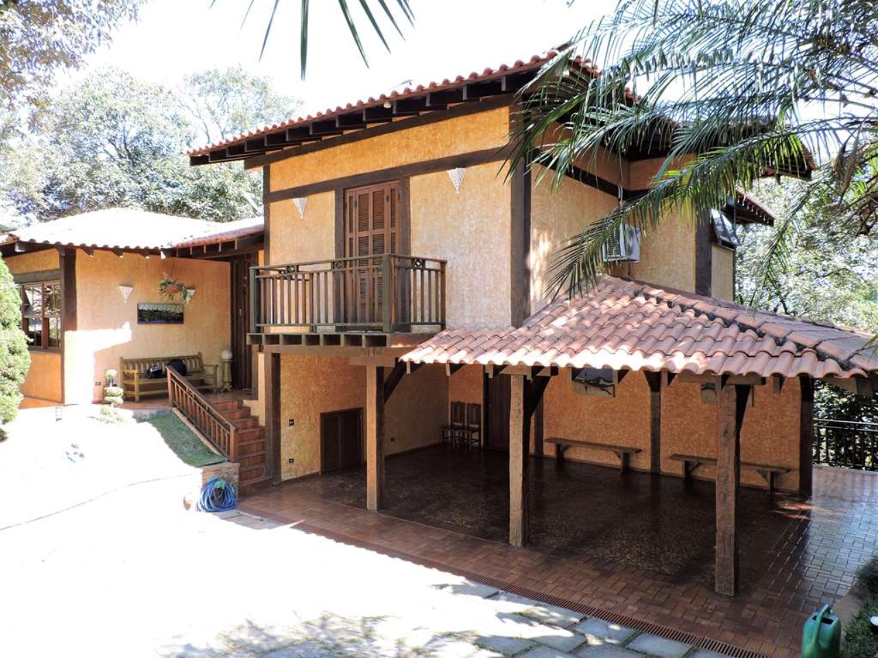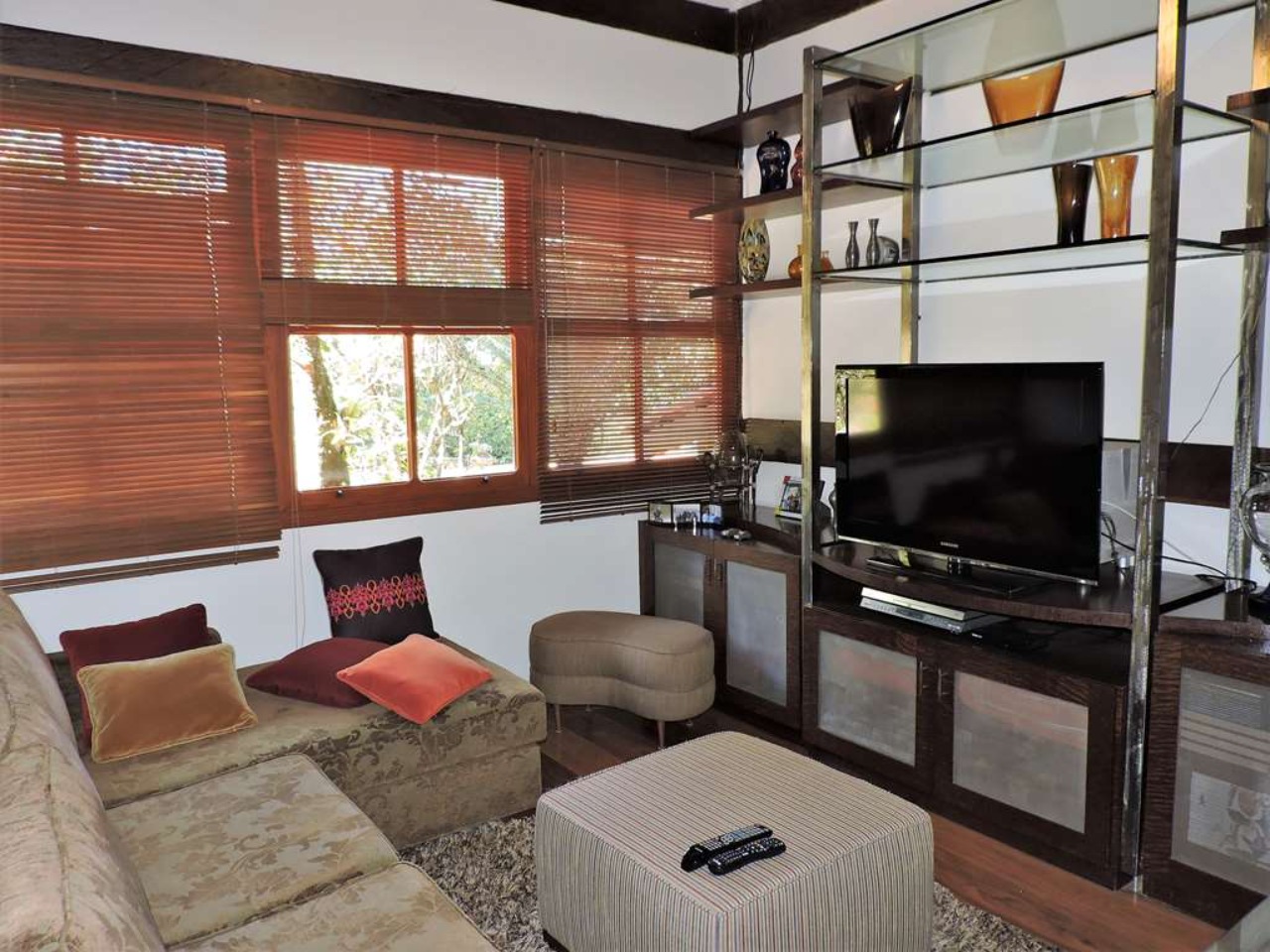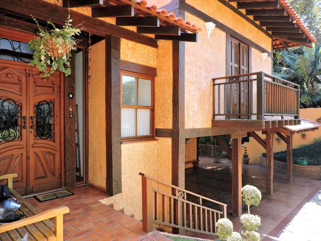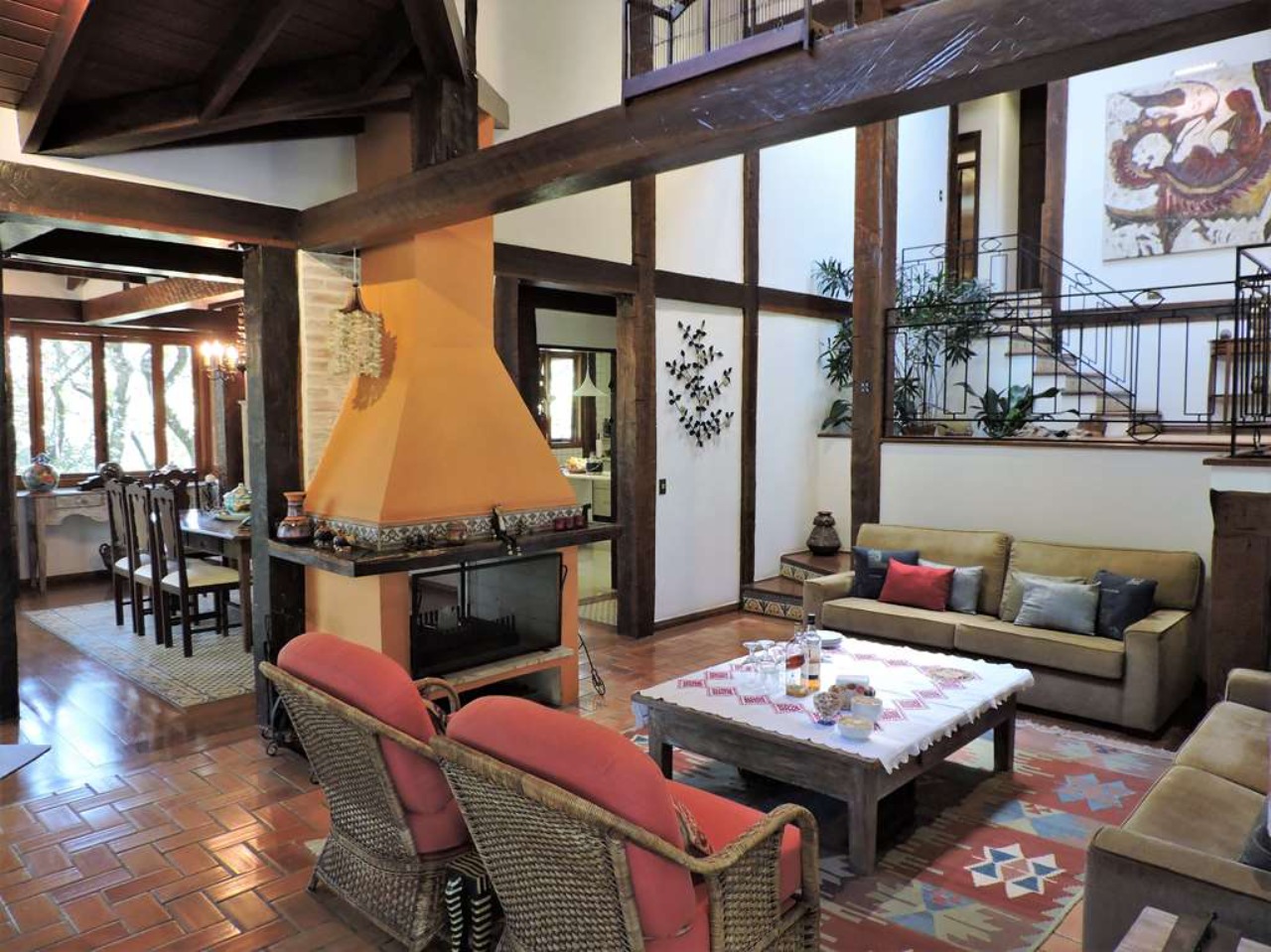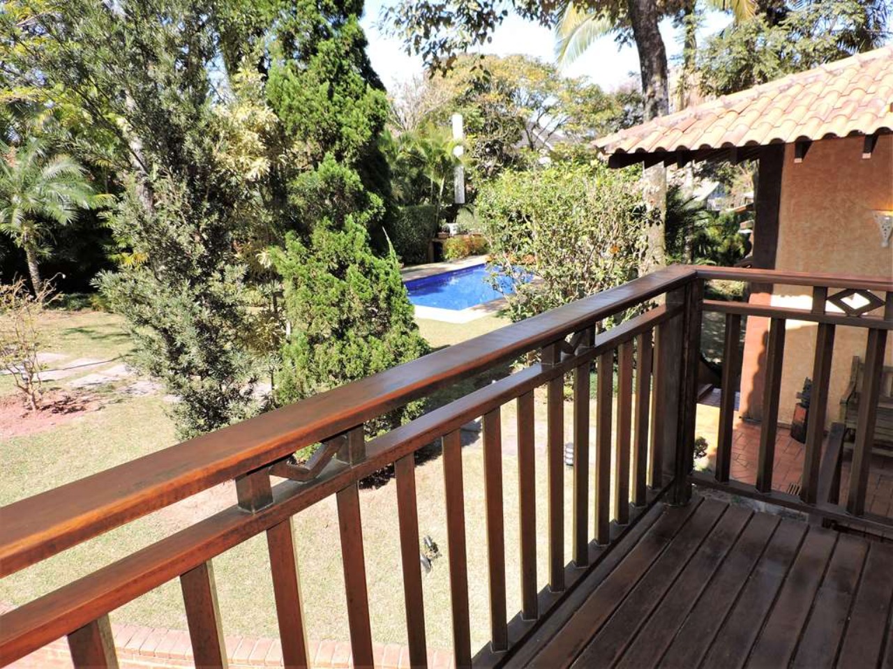 Ótima localização em final de rua, com muita natureza e privacidade. Excelente casa integrada em estilo rústico e ótimo acabamento. Projeto da Arquiteta Sandra Sayeg Tranchesi. Projetos de iluminação e paisagismo. Imóvel repleto de armários, com madeiramento em maçaranduba, pisos de tábuas largas em Camaçari , tijolos, ladrilho hidráulico e cerâmica. Hall de entrada social pelo piso intermediário, com jardim interno, claraboia e lavabo. Dando acesso ao living por meios lances de escada (para baixo), e à área íntima (para cima). Living envidraçado com pé direito alto, para 4 ambientes: salas de jantar e estar que dividem a lareira, sala de TV e escritório. Ótima varanda em ?L? com espaço gourmet, churrasqueira, ilha com bancada, pia e armários, voltada para piscina e jardins. Piscina de alvenaria, aquecida e iluminada, com prainha, hidro, gazebo, solaruim e ducha. Banheiros com espelhos, gabinetes, box de vidro e tampos em mármore, sendo a máster com 2 cubas e hidro. Copa cozinha americana com ilha e armários planejados, fogão, cooktop, coifa e despensa. Área de serviço aberta e fechada, com 2 tanques e armário planejado. Dependências de empregada totalmente independente, sob a varanda. Pode ser convertido em escritório, ateliê, studio, etc. Portão Automático. Aquecimento central de água: Boiler elétrico. Abastecimento de água: Sabesp e poço artesiano.  REF:CA01351
