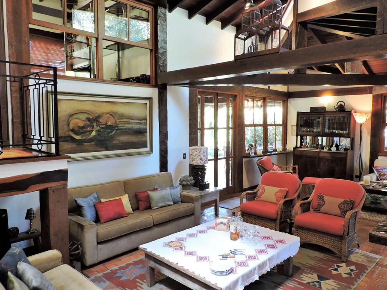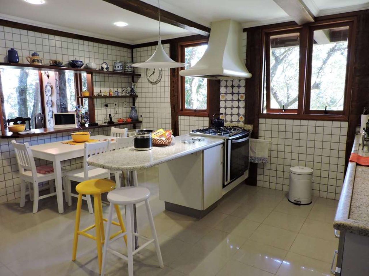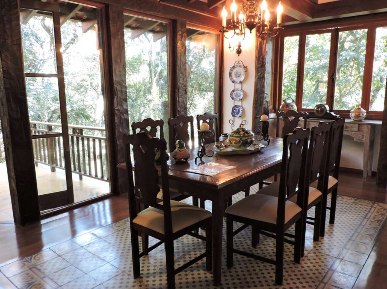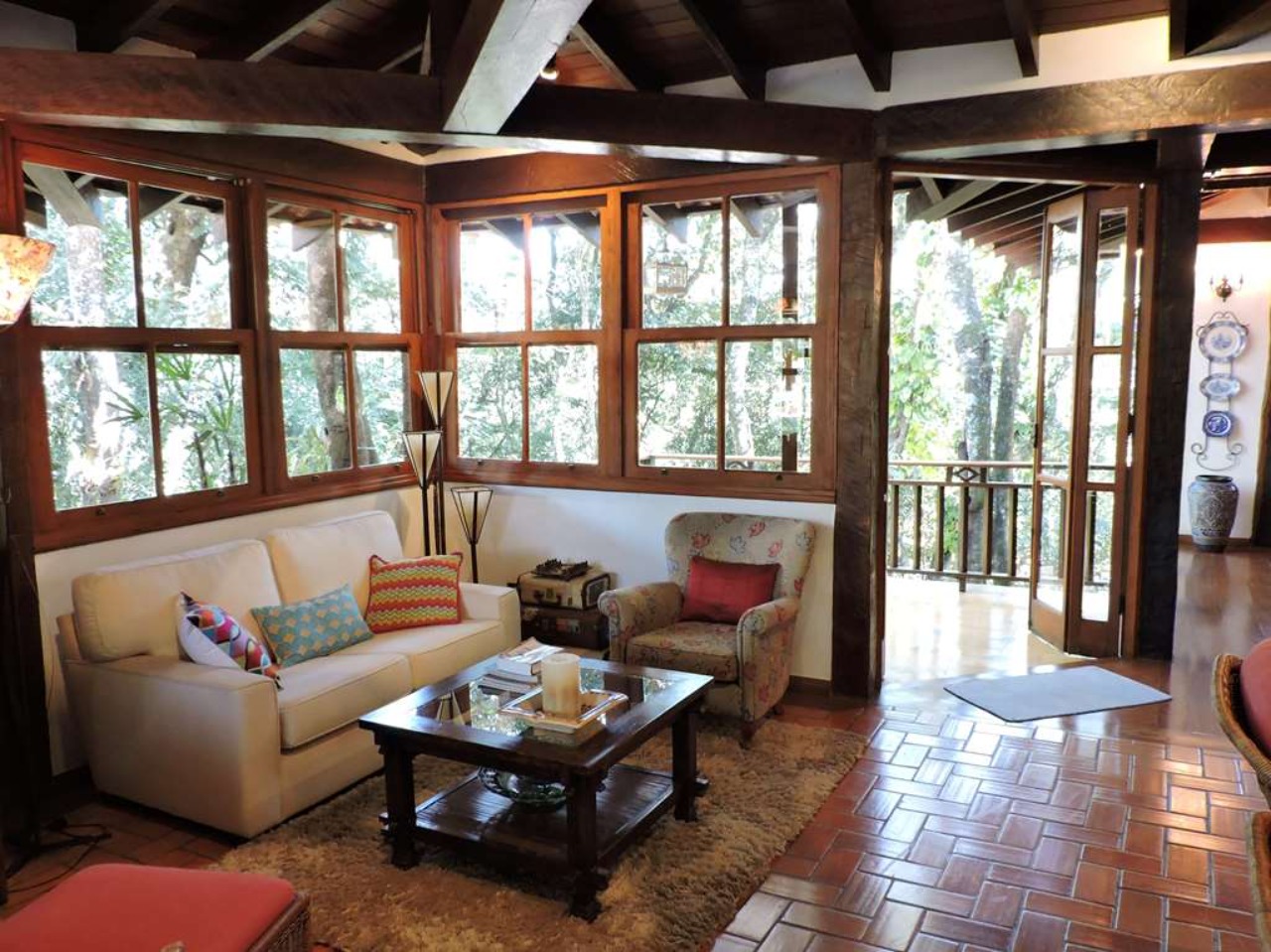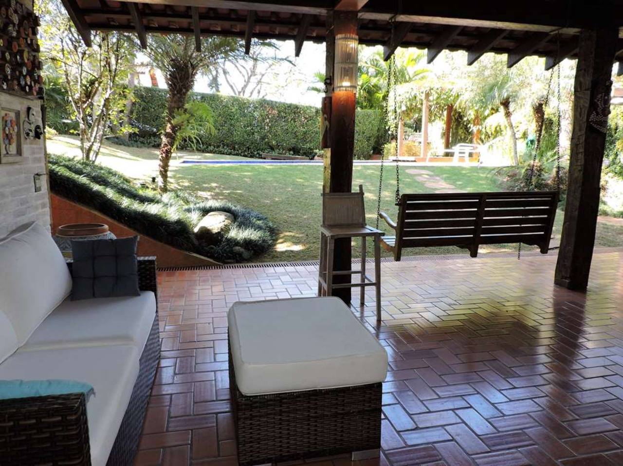 Ótima localização em final de rua, com muita natureza e privacidade. Excelente casa integrada em estilo rústico e ótimo acabamento. Projeto da Arquiteta Sandra Sayeg Tranchesi. Projetos de iluminação e paisagismo. Imóvel repleto de armários, com madeiramento em maçaranduba, pisos de tábuas largas em Camaçari , tijolos, ladrilho hidráulico e cerâmica. Hall de entrada social pelo piso intermediário, com jardim interno, claraboia e lavabo. Dando acesso ao living por meios lances de escada (para baixo), e à área íntima (para cima). Living envidraçado com pé direito alto, para 4 ambientes: salas de jantar e estar que dividem a lareira, sala de TV e escritório. Ótima varanda em ?L? com espaço gourmet, churrasqueira, ilha com bancada, pia e armários, voltada para piscina e jardins. Piscina de alvenaria, aquecida e iluminada, com prainha, hidro, gazebo, solaruim e ducha. Banheiros com espelhos, gabinetes, box de vidro e tampos em mármore, sendo a máster com 2 cubas e hidro. Copa cozinha americana com ilha e armários planejados, fogão, cooktop, coifa e despensa. Área de serviço aberta e fechada, com 2 tanques e armário planejado. Dependências de empregada totalmente independente, sob a varanda. Pode ser convertido em escritório, ateliê, studio, etc. Portão Automático. Aquecimento central de água: Boiler elétrico. Abastecimento de água: Sabesp e poço artesiano.  REF:CA01351