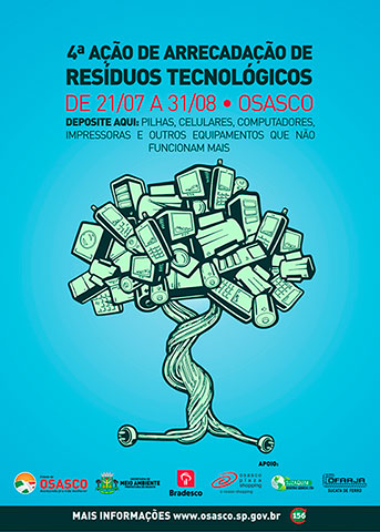 Pelo quarto ano consecutivo, a Secretaria de Meio Ambiente de Osasco (Sema), com o apoio do Banco Bradesco, Suzaquim, Cofarja e Osasco Plaza Shopping, promove a Ação de Arrecadação de Resíduos Tecnológicos. A campanha terá início no dia 21 de julho e se encerrará em 31 de agosto.