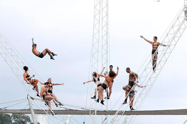 O veículo se transforma em um grande trapézio em que os artistas realizam acrobacias aéreas em uma altura de 16 metros. A apresentação conta de forma poética a história da chegada dos primeiros grupos circenses no Brasil e como os espetáculos de circo foram se modernizando e evoluindo através dos tempos.